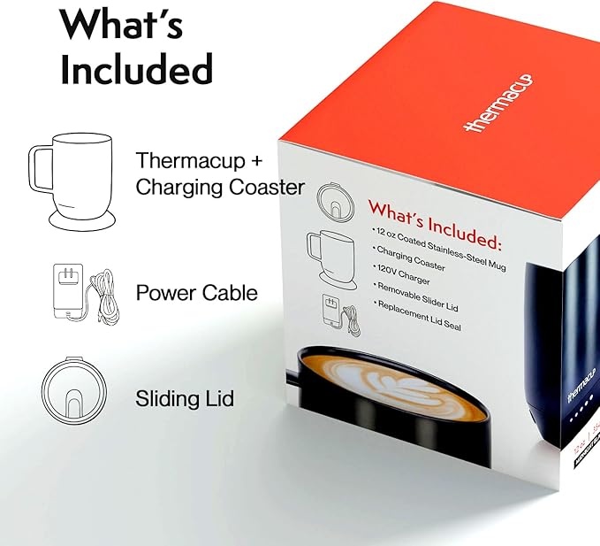 - Revolutionary Smart Self-Heating Mug Technology: Thermacup's temperature-controlled engineering maintains your chosen heat (110°-150°F) for any beverage—coffee, tea, hot chocolate, or soup—with industry-leading heat retention for perfect warmth from first sip to last drop without microwave reheating.