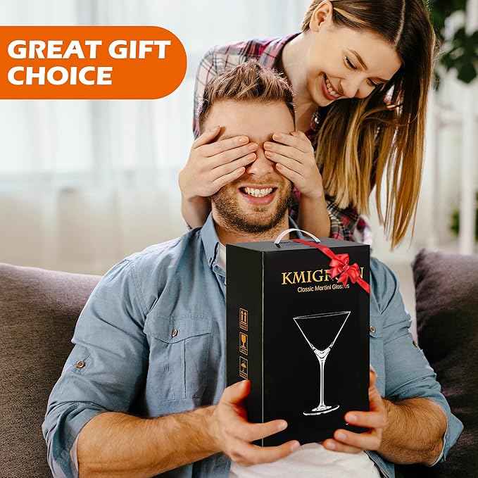 - Luxurious Gift Packing:KMIGRUAN cocktail glasses set comes with a premium gift box which is a perfect gift for any occasions such as Birthday,Father's Day,anniversaries,holidays or Christmas.questions? We're always ready to help