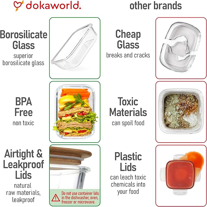 - EXTREME TEMPERATURE RESILIENCE. Our glass containers are oven- and freezer-safe thanks to their premium, high-resistant borosilicate glass. Premium quality ensures reliability in every scenario.