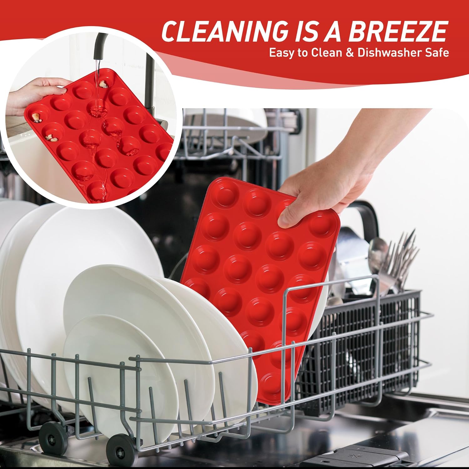 - Effortless Release Every Time: The baking cupcake muffin pans features a smooth, nonstick surface that releases baked goods with just a gentle push from the bottom - no messy greasing or stubborn sticking. After baking, simply place the entire baking cupcake muffin pans in the dishwasher for effortless cleaning. Compared to traditional metal baking cupcake muffin pans, our high-quality silicone material resists oil absorption, reducing residue buildup by 85% for quicker, simpler cleanup.