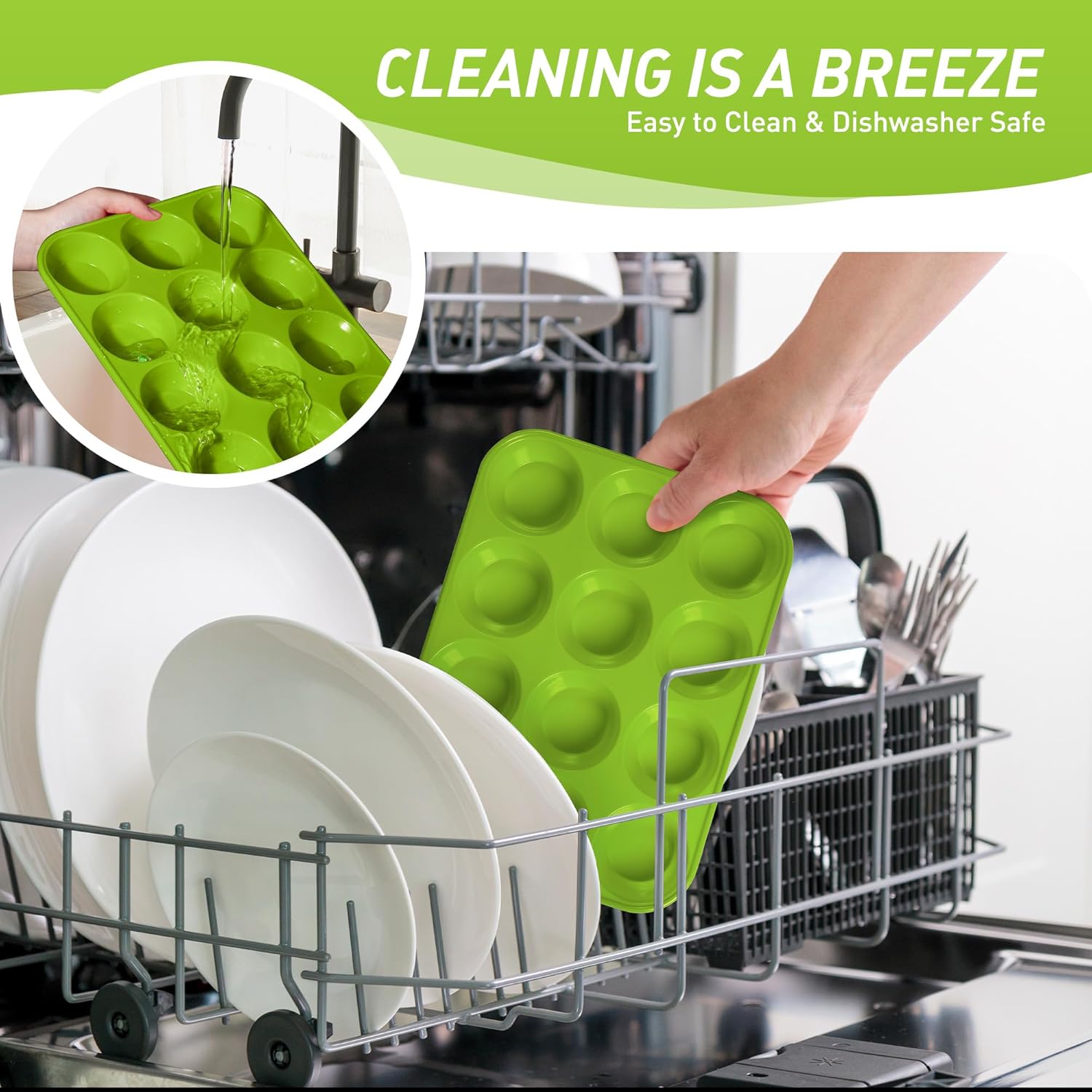 - Effortless Release Every Time: The baking cupcake muffin pans features a smooth, nonstick surface that releases baked goods with just a gentle push from the bottom - no messy greasing or stubborn sticking. After baking, simply place the entire baking cupcake muffin pans in the dishwasher for effortless cleaning. Compared to traditional metal baking cupcake muffin pans, our high-quality silicone material resists oil absorption, reducing residue buildup by 85% for quicker, simpler cleanup.