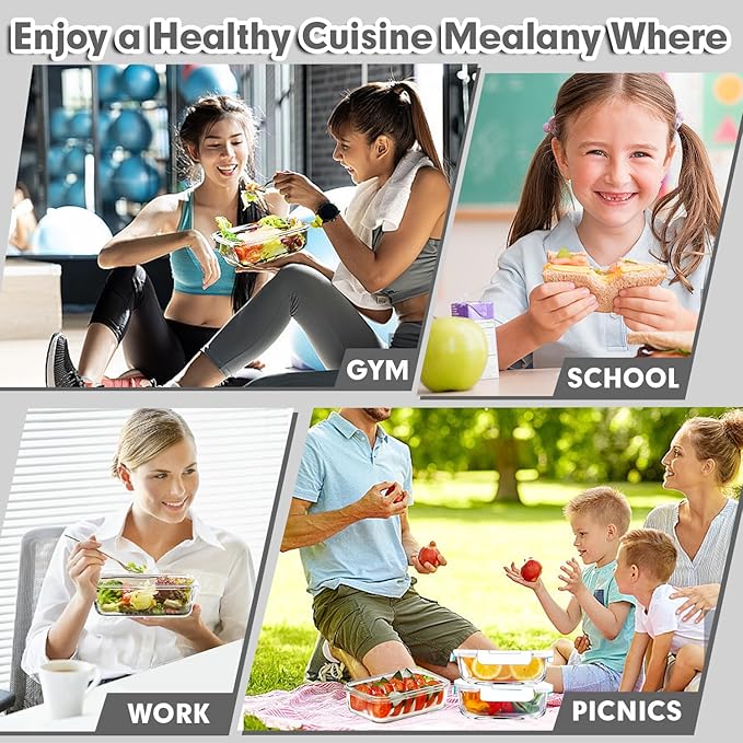 - SAFE & PORTABLE: Compared to ordinary plastic meal prep containers, our glass meal prep containers are non-toxic and long-lasting, wonโt absorb food flavors, or stains, and make them easy to clean. Perfect sizes and shapes are perfect for various occasions and events