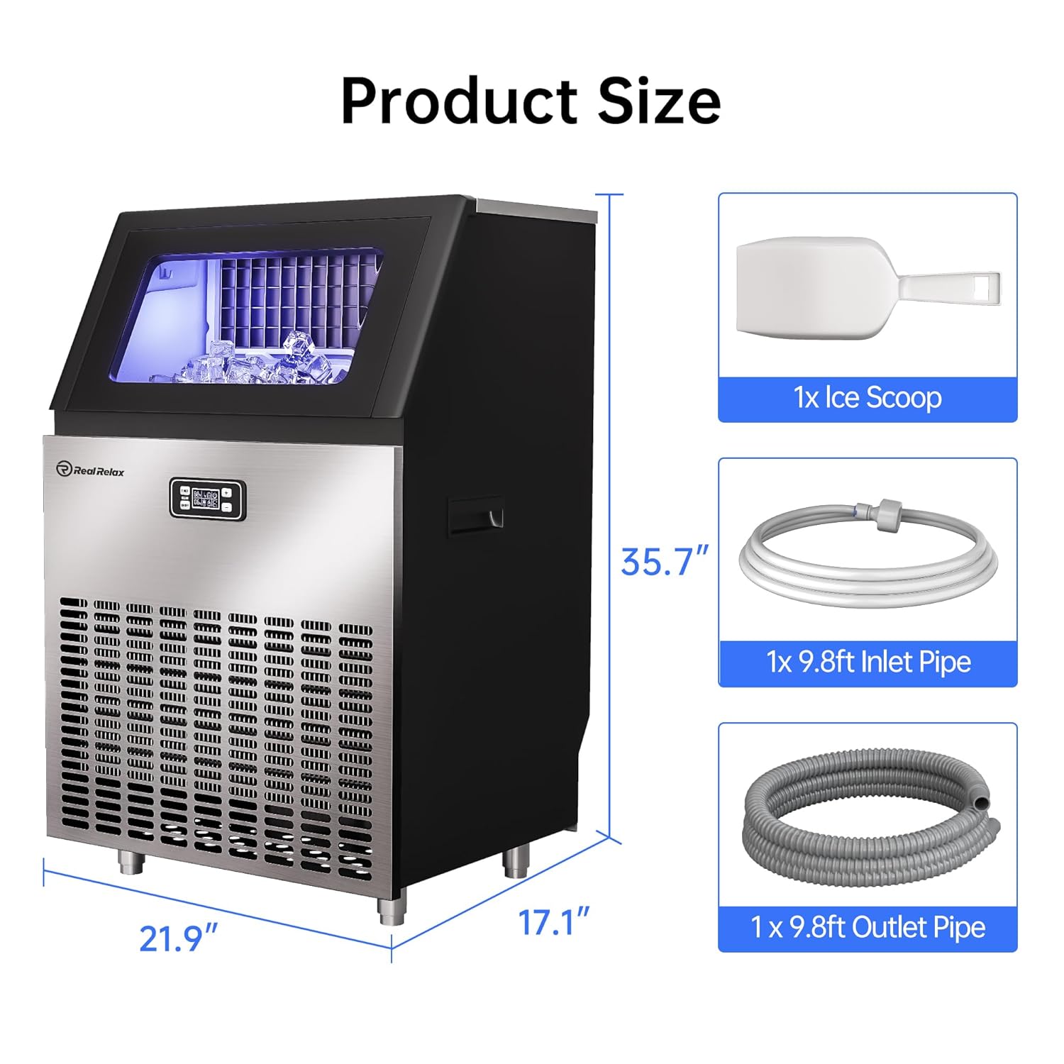 Real Relax Commercial Ice Maker Machine, 270LBS/24H Integrated Ice Machine, 48LBS Ice Storage Capacity, Auto Self-Cleaning, LCD Display, Blue Light, with Ice Scoop for Home Restaurant Bar Office Party
