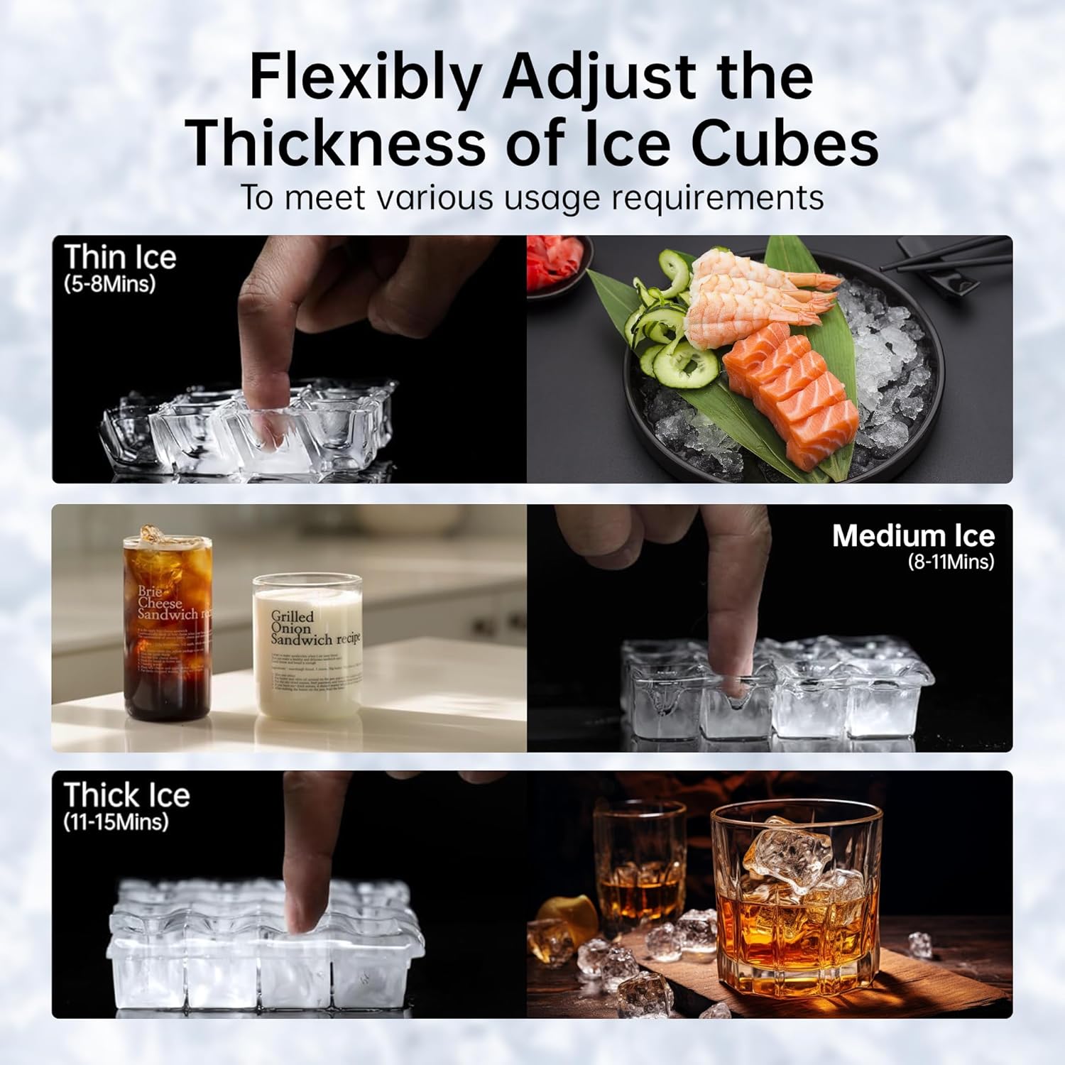 - Quiet Ice Making: Brand compressor enables the undercounter ice maker to efficiently complete the ice making process below 50 decibels without generating too much noise, saving electricity bills and extending the service life of the machine