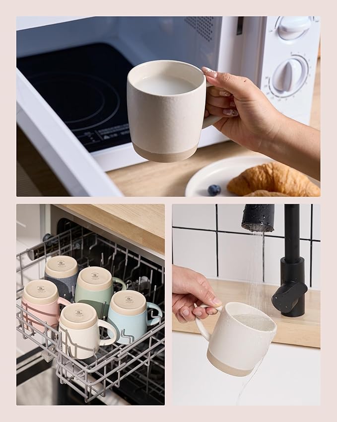 - Safe to use: The ceramic coffee mugs are made of food-grade glaze and fired at 2340°F for 13.5 hours, making the mug set stronger, more durable, lead-free, cadmium-free, eco-friendly and healthier