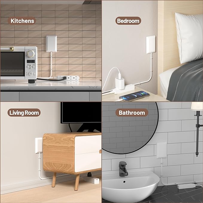 - ✅Safety Protection Cover--Sleek ultra-thin cover perfectly covers the electrical outlet,effectively protects curious children and pets;Included cord concealment kit secures extension cords to the wall,avoiding the risk of exposed outlets or tangled cords