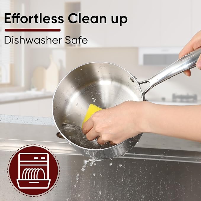 2 Quart Saucepan with Lid, Homikit 2QT Tri-Ply Stainless Steel Sauce Pan with Ergonomic Handle, Heavy Bottom Small Pot for Kitchen Cooking, Compatible with All Cooktops for Boiling Eggs Warming Milk