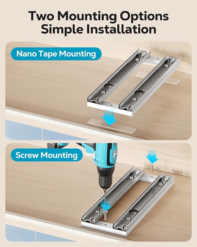 - [3-Min Install] Includes screws, screwdriver, nano tape & guide. Choose your easy install: Ultra-strong hold nano tape ( no-drill ), or secure screw-mounting for permanent stability.