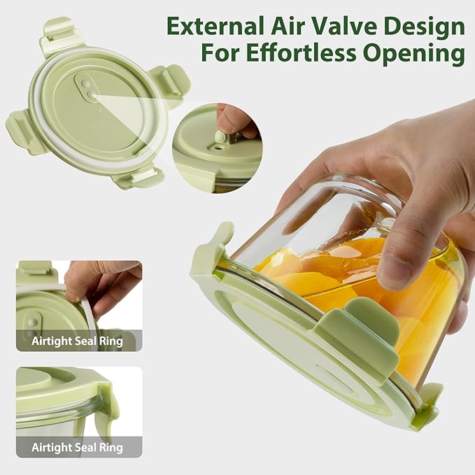 - LEAKPROOF EASY OPENING LIDS: These food storage containers feature airtight lids to prevent leaks and keep fresh with 4 locking tabs and seal ring that are BPA-free, the removable air valve could help opening effortless. Save food for tomorrow or warm today's lunch with less worries.