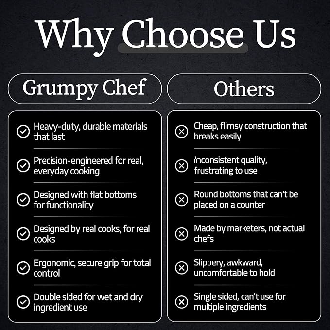 - FLAT BOTTOM FOR HANDS-FREE MEASURING: No more spills! Each measuring cup and spoon features a flat bottom to rest securely on the counter, letting you prep ingredients with ease and precision—perfect for busy bakers and chefs.