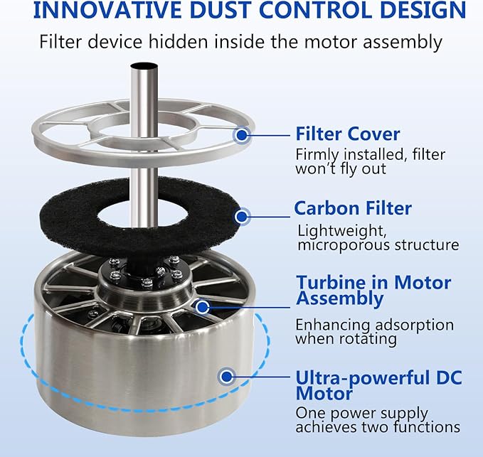 - Modern Ceiling Fans with Dust Control: The Brushed Nickel Ceiling Fans with Lights feature a vortex turbine in motor assembly & carbon filter, for eliminate odors and dust contaminants. Recommended to replace the filter every 3-6 months (Included two filters, one installed and one spare).