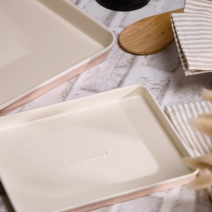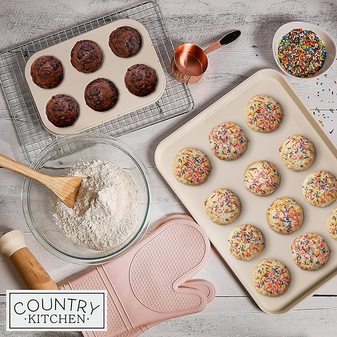 Country Kitchen Nonstick Stackable Bakeware Set - Deluxe Heavy Duty, Durable, Easy Release Baking Set, Pink, 13 Pcs with Handles