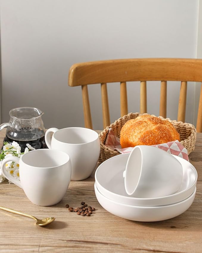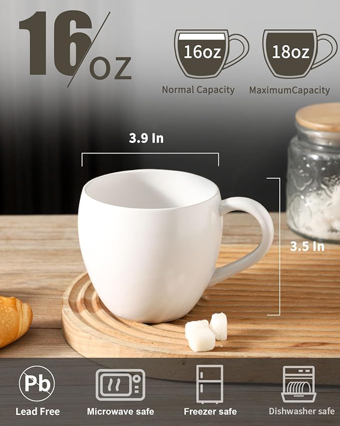 Coffee Mugs Set of 4, Stoneware 16 oz Coffee Cups for Latte, Tea, Milk, Cappuccino, Ceramic Tea Cups for Housewarming Wedding Gift, Microwave & Dishwasher Safe, Matte White