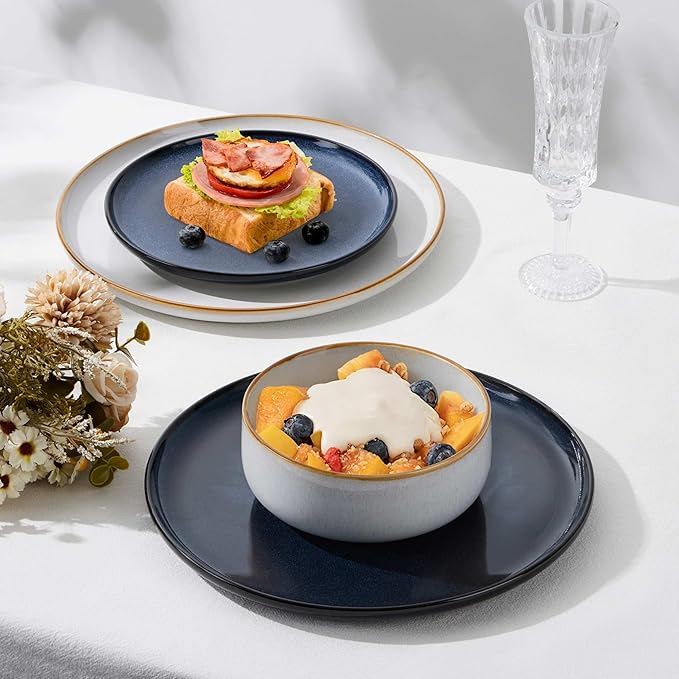 - Double reactive glaze craftsmanship, our plates and bowls are made with double-layer reaction glaze technology, which enriches the color of the stoneware and enhances the durability of the surface, the handmade edges complement the shiny glaze, making the bowl surface bright and appear uniquely appealing, also more wear-resistant, less likely to be scratched by tableware, and easy to clean