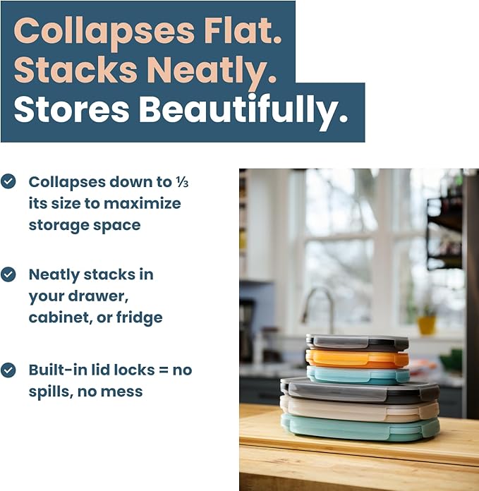 - SAVE 70% CABINET SPACE: Maximize your kitchen storage with Secondz! These collapsible containers shrink down to just a fraction of their size, keeping cabinets neat and organized - perfect for small kitchens, dorms, RVs, and meals on the go.