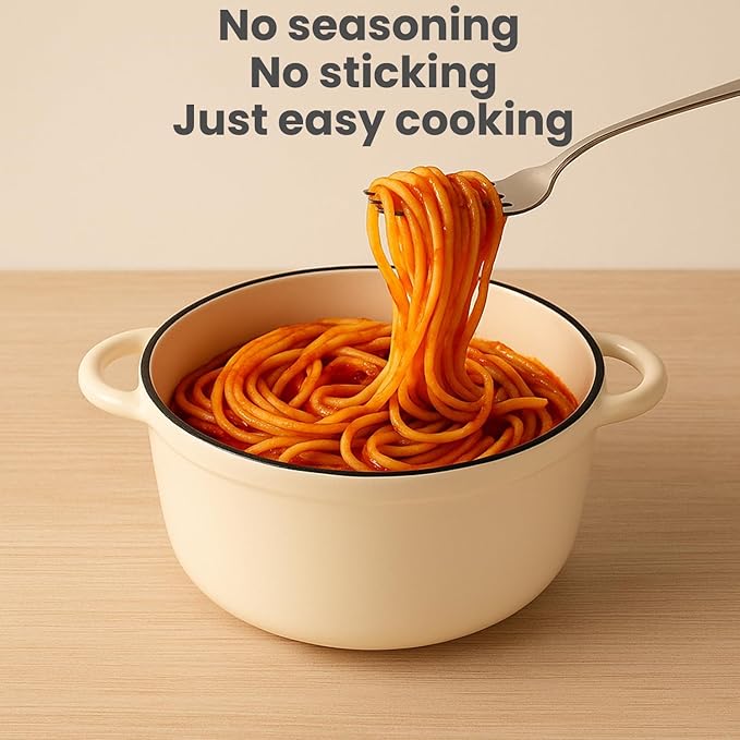 - 【Easy To Cook And Clean】The smooth porcelain enameled interior reduces sticking and aids caramelization. While it's dishwasher-safe, hand-washing with warm soapy water and a nylon brush keeps your enameled cast iron cookware set looking brand new for years. This set truly transforms your cooking and dining experience