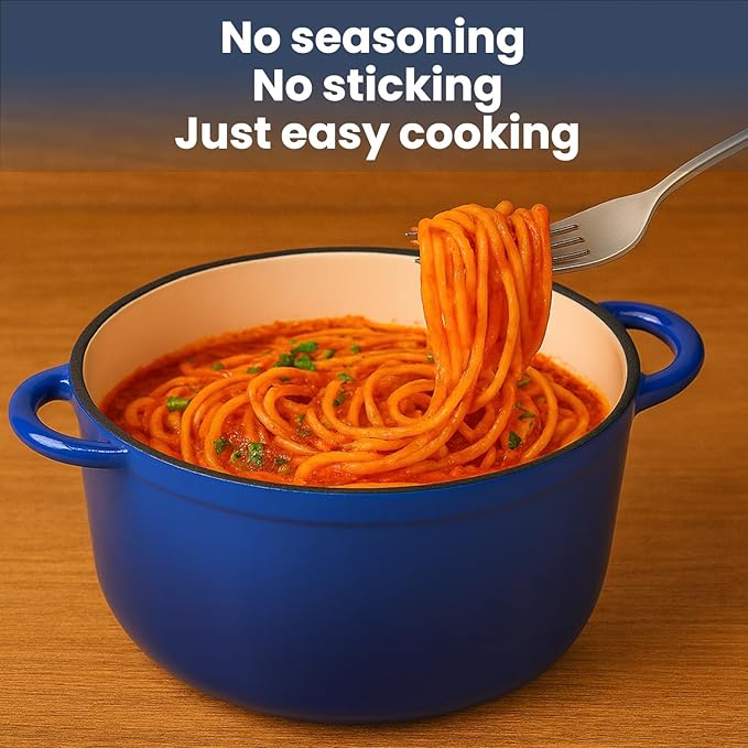 - 【Easy To Cook And Clean】The smooth porcelain enameled interior reduces sticking and aids caramelization. While it's dishwasher-safe, hand-washing with warm soapy water and a nylon brush keeps your enameled cast iron cookware set looking brand new for years. This set truly transforms your cooking and dining experience