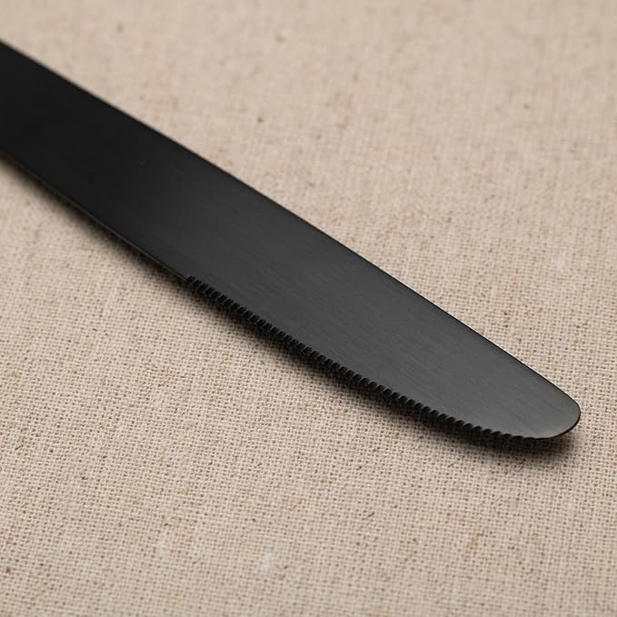 Alata Kate Black Satin 40-Piece Silverware Set, Service for 8, Stainless Steel Flatware Set, Matte Polished Cutlery Set, Dishwasher Safe