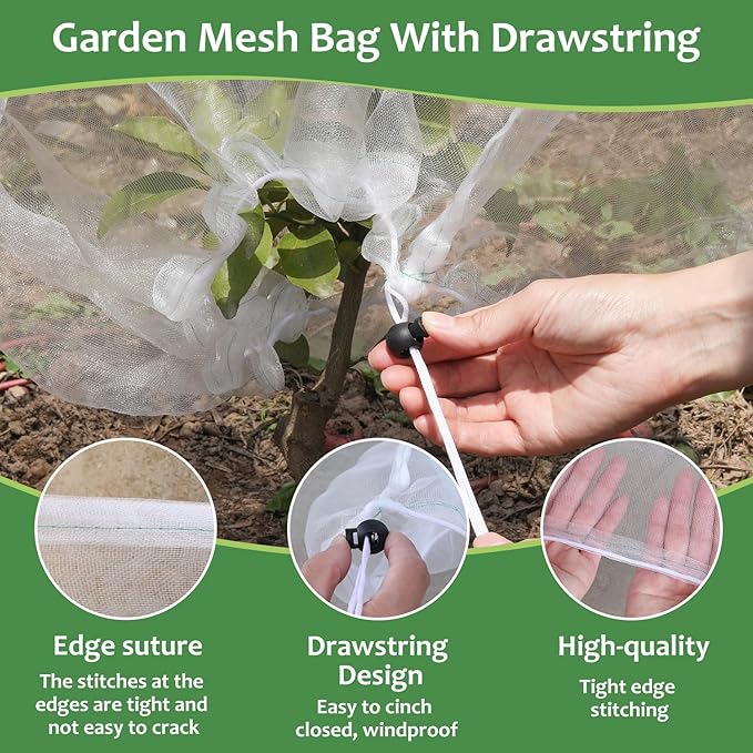 - 4. Easy to Use & Versatile: The adjustable drawstring (can be used at top or bottom) makes installation simple for bushes, trees, or potted plants. Perfect for gardens, greenhouses, patios, and more!