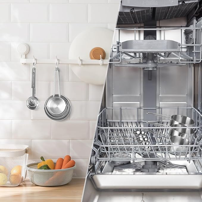 - Heavy-Duty Construction: Cups crafted from 0.7mm thick stainless steel and spoons formed via one-piece construction, rust-resistant and warp-proof for lasting durability in busy kitchens.