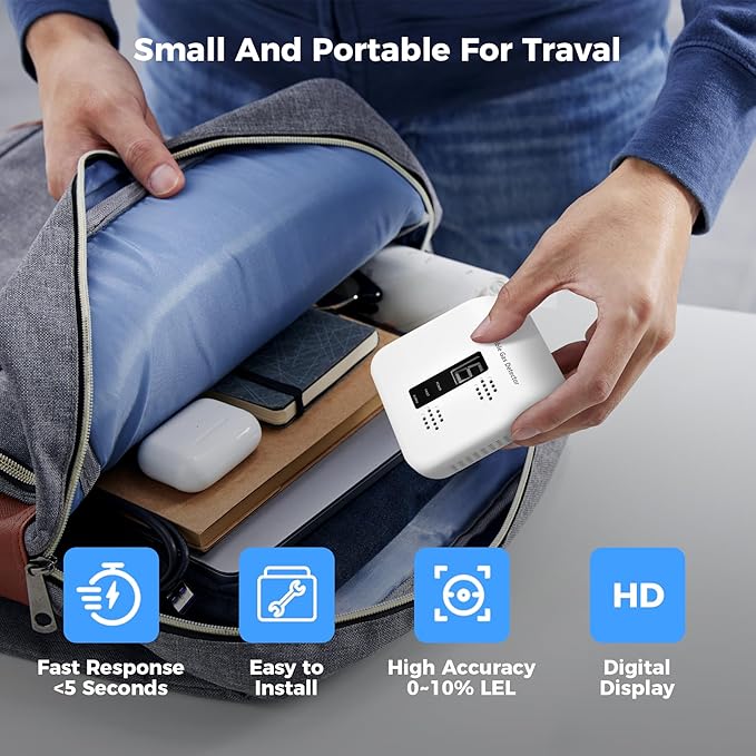 - Compact & Travel-Friendly:Designed with a slim, space-saving profile and a plugin plug—perfect for travel. Bring safety with you to hotels, Airbnbs, or RV adventures without bulky equipment.