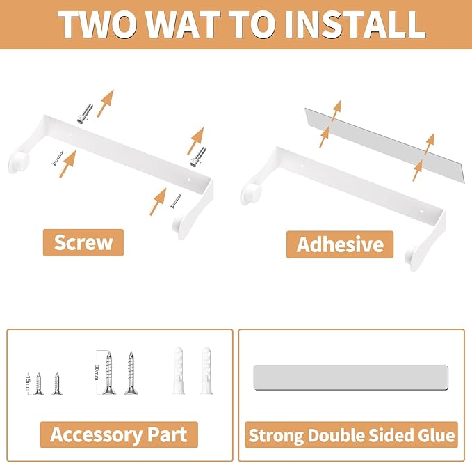 - 【Sticking or Drilling】: The adhesive backing made it easy to mount without any special tools or expertise. It’s a great option for renters or anyone who prefers not to make permanent alterations. It can also be drilled, Using long screws on the wall and short screws on the cabinet.