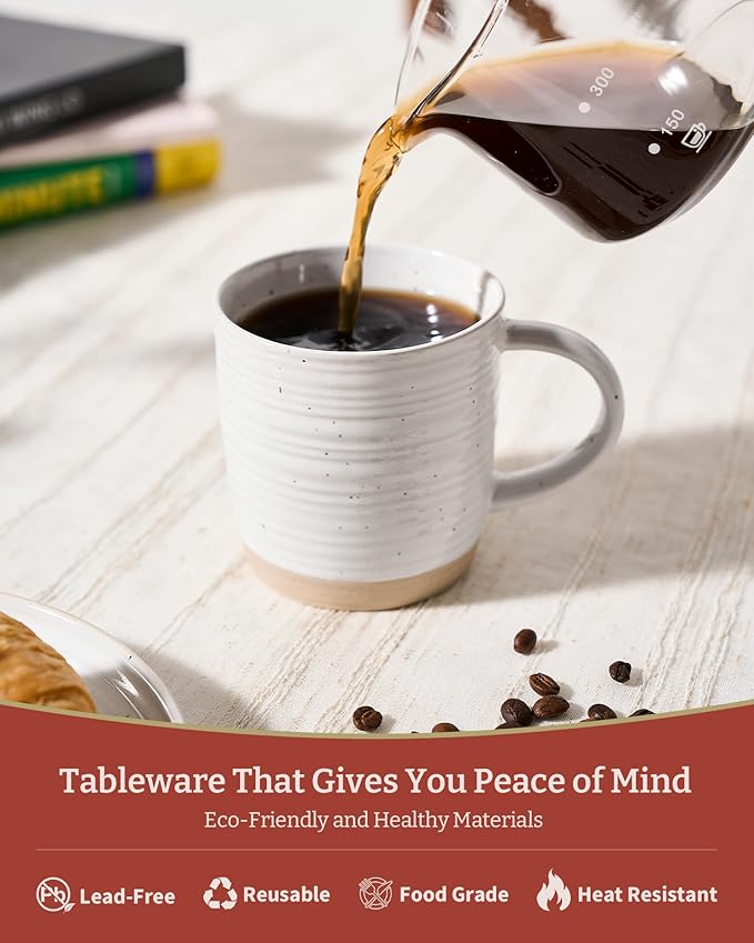 - Safe to use: The ceramic coffee mugs are made of food-grade glaze and fired at 2340°F for 13.5 hours, making the mug set stronger, more durable, lead-free, cadmium-free, eco-friendly and healthier
