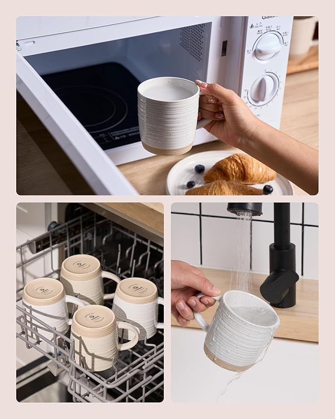 - Safe to use: The ceramic coffee mugs are made of food-grade glaze and fired at 2340°F for 13.5 hours, making the mug set stronger, more durable, lead-free, cadmium-free, eco-friendly and healthier