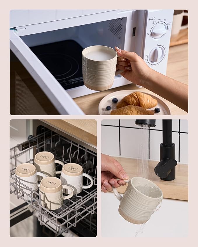 - Safe to use: The ceramic coffee mugs are made of food-grade glaze and fired at 2340°F for 13.5 hours, making the mug set stronger, more durable, lead-free, cadmium-free, eco-friendly and healthier