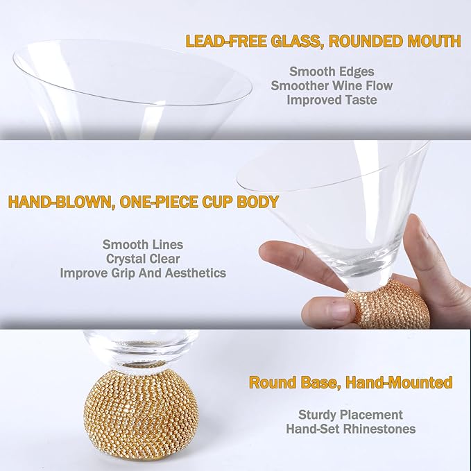 - Exquisite Craftsmanship: Each glass is meticulously crafted with attention to detail. The inlayed crystal studded design adds a touch of glamour, ensuring that these glasses not only serve their practical purpose but also make a stunning visual statement. The crystals are firmly attached and will not fade or lose their color over time