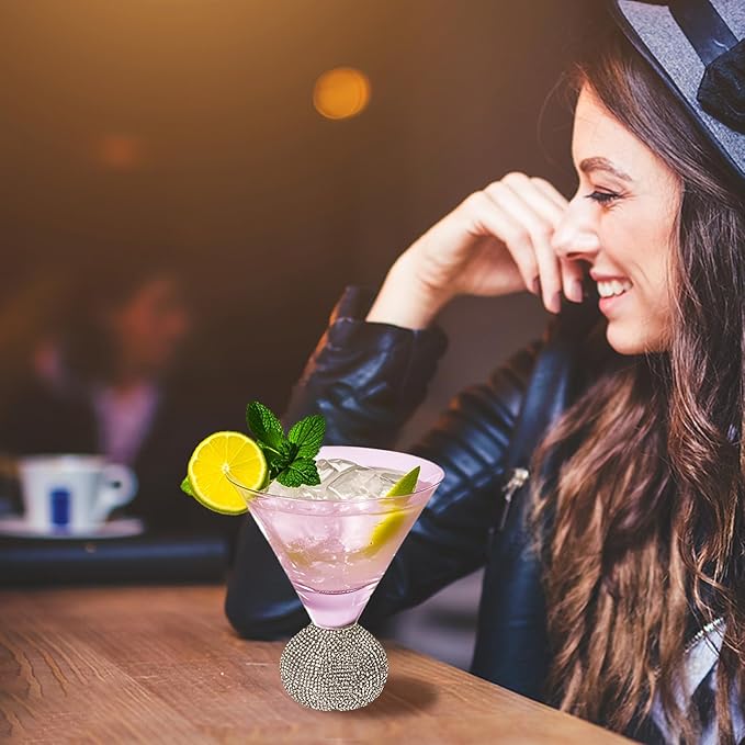 Martini Glasses Set of 4,Stemless Margarita Glasses,Unbreakable Crystal Fancy Cocktail Glasses,10 Oz Bar Glass,for Party,Birthday,Manhattan, Cosmopolitan, Home Bargifts Women (Silver Pink)