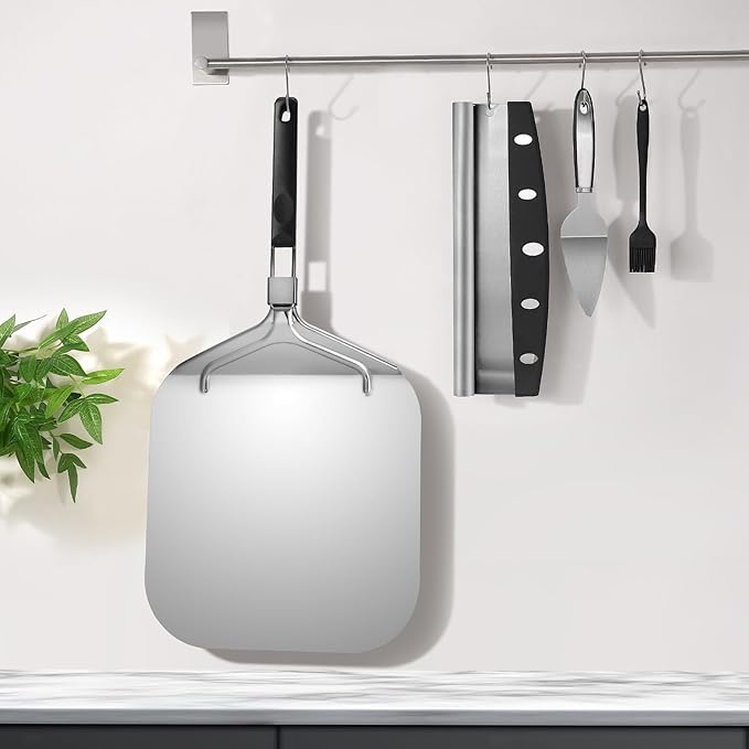 - 【Easy to Clean】: Our pizza spatula paddle is very easy to clean. The smooth surface can be easily wiped down with a damp cloth. The pizza peel with folding handle is moisture resistant and will not chip, bend or crack. A built-in hanging hole at the end of the handle allows for vertical or wall storage, keeping your kitchen clutter-free. Ideal for small spaces or hanging alongside other cooking tools