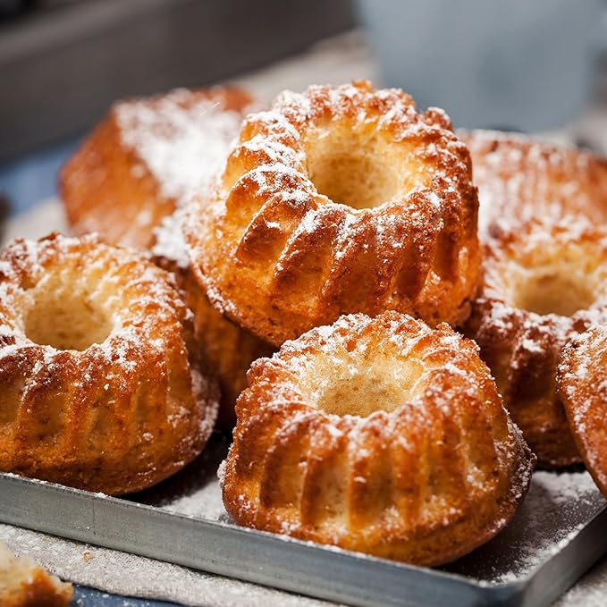- 6 CUP MINI FLUTED TUBE PAN - Set of 3 fluted tube pans, each with 6 cups (18 cups total), perfect for the whole family or party. Designed for delicious homemade bundt cakes, cupcakes, muffins, brownies, cookies, cheesecakes, quiches, jellies etc.