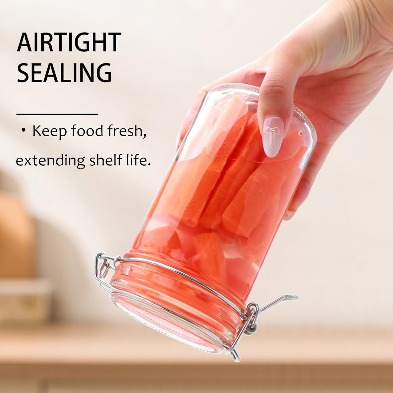 - 【Easy to Fill and Clean】Experience the convenience of these 16 oz glass storage jars. Wide enough mouth and smooth glass make filling and hand-cleaning a breeze. For ultimate convenience, the glass containers are dishwasher-safe (remove rubber seal first). A quick dry of the clasp after washing keeps it like new.