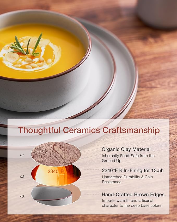 - SUITABLE FOR EVERYDAY USE: Our glaze is fired at 2340°F for 13.5 hours, forming a resilient surface. It typically withstands contact with cutlery during daily use, though avoiding excessive force is recommended.