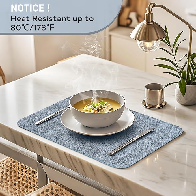 - HEAT RESISTANCE - UP TO 178 °F (80 °C): These dining table place mats can protect your dining table from leaving a white heat marks.better protect your dining table .
