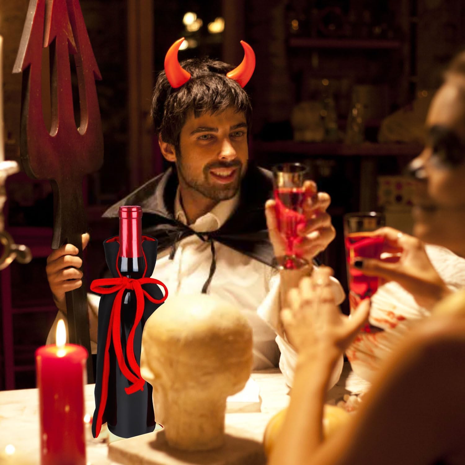 - Value Pack:You will receive two Halloween Wine Bottle Cover. The Vampire cape is 10.5 inches long, and the cape's binding can be adjusted by you to perfectly match your favorite red or white wine.