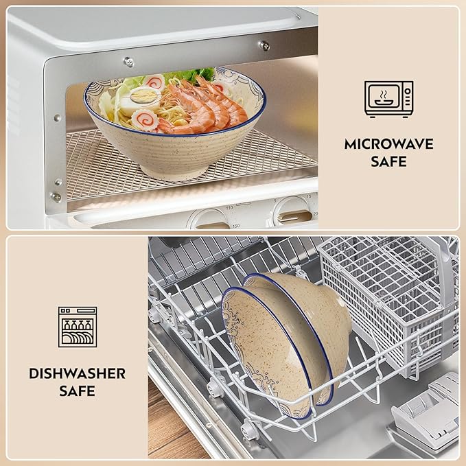 - Easy to Clean: The surface of the ramen bowls is covered with a layer of high-density glaze, the inner surface of these ramen bowls is smooth, easy to clean, scratch-resistant, durable and suitable for daily use. They are microwave, oven and dishwasher safe.