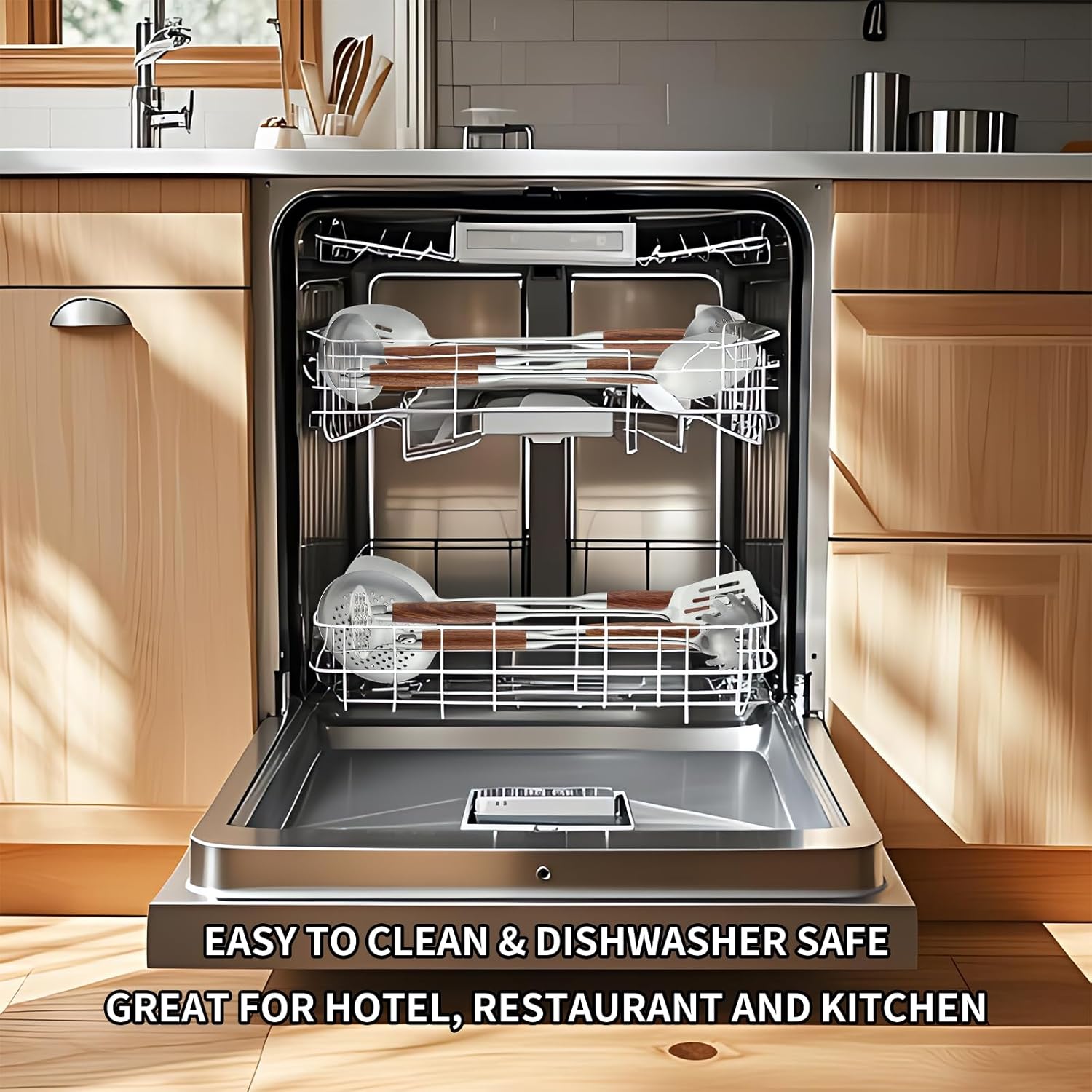 - Easy To Use and Store: The edges of the handle are rounded, smooth, and heat-resistant, so it won't burn your hands. With big hanging holes, easy to be hung to save space. our stainless steel cooking utensil tools can easily prevent dirt and grime from hiding, easier to clean. hand wash or dishwasher safe.