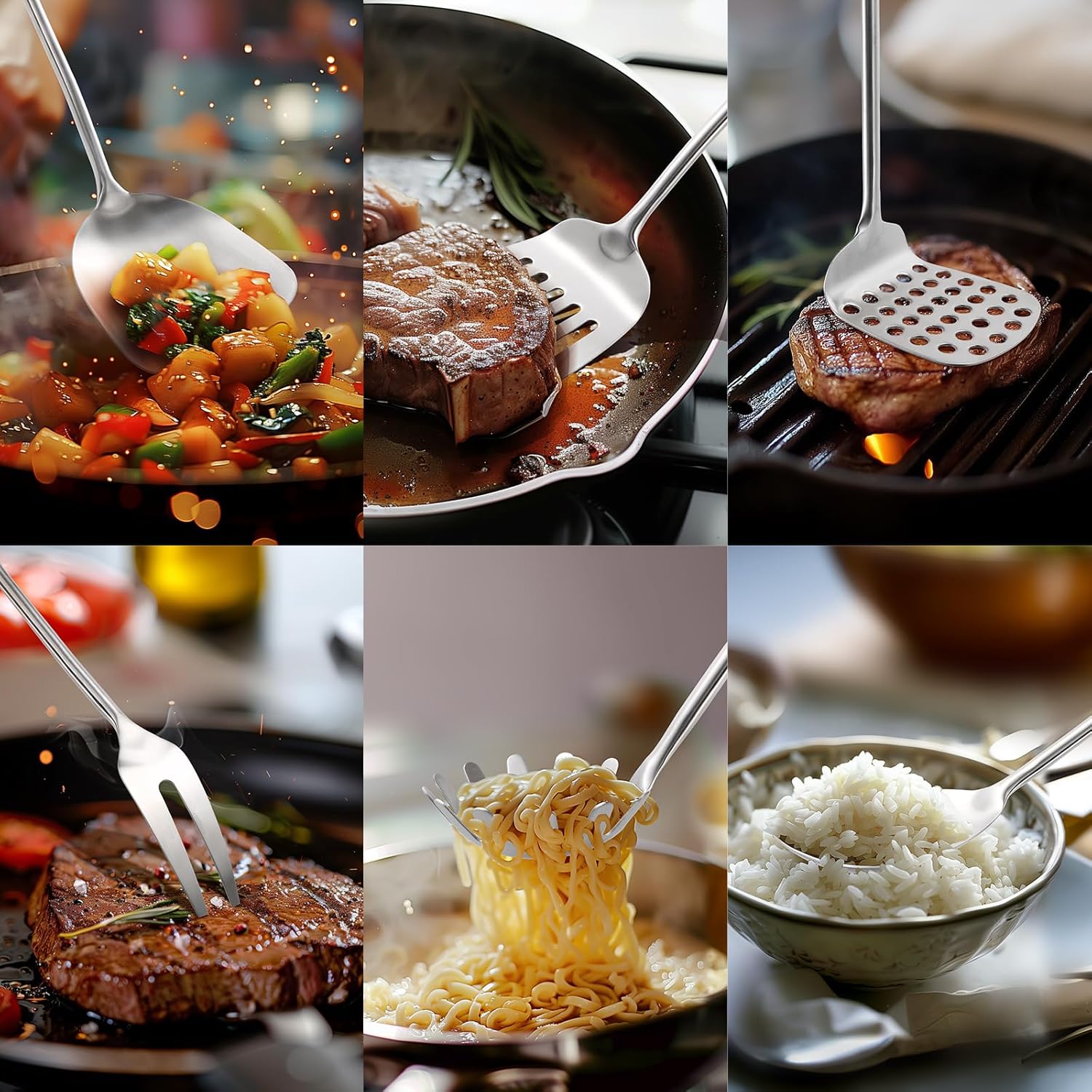 - Perfect for Professional Chefs & Home Use: Idea gift for friends and family who love cooking with premium quality kitchen utensils. Our metal utensils set will exceed any expectations that your family, friends, or colleagues might have.