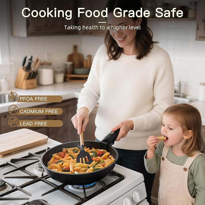 - 【High-Performance Nonstick Coating】 Equipped with a premium nonstick coating, our pots and pans offer exceptional durability and performance. Easy to clean and free from harmful chemicals like PFOA, it ensures a healthier cooking experience.