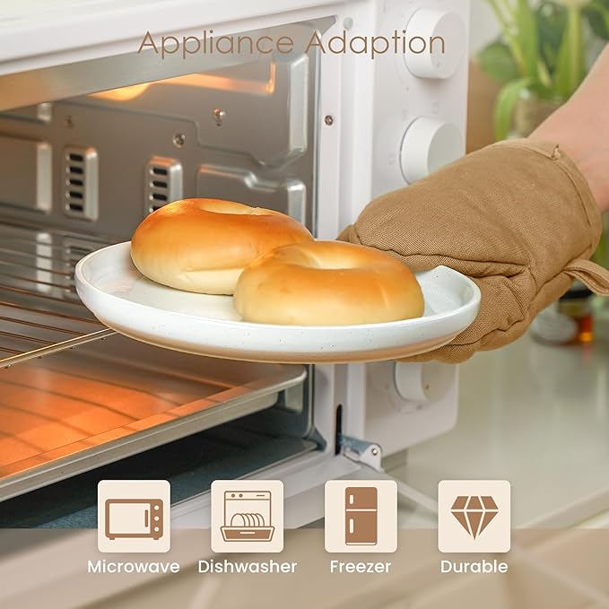 - Rustic Speckled & Matte Terracotta Underside Design – Thisceramic plates and bowls set adds earthy sophistication to your table. Inspired by Mediterranean pottery traditions,each piece features a hand-textured, unglazed base that exudes rustic charm while providing exceptional grip—no more slipping on marble countertops or polished wood surfaces. The warm, muted terracotta tones create a striking contrast with modern tableware, blending seamlessly into farmhouse, bohemian, or minimalist settings.