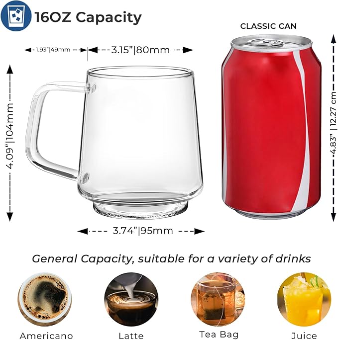 - Stylish & Modern: The highly translucent glass body and simple design of these clear mugs add elegance to any setting, making them suitable for both casual use at home and professional settings in the office