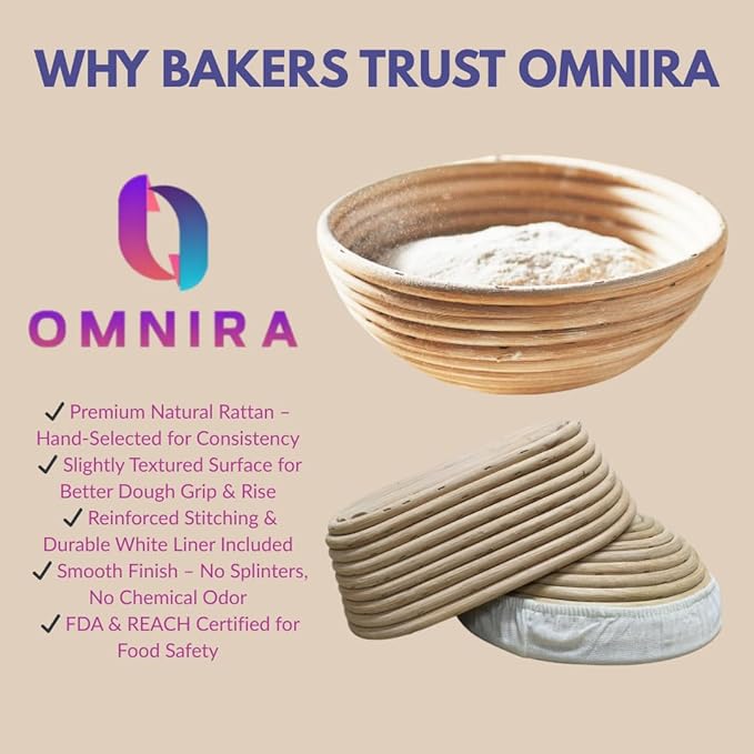 - ๐งบ Premium Natural Rattan Baskets Made from 100% natural rattan that promotes ideal air circulation for great fermentation and crust development. Each basket includes a reusable, washable liner for clean and consistent dough shaping.