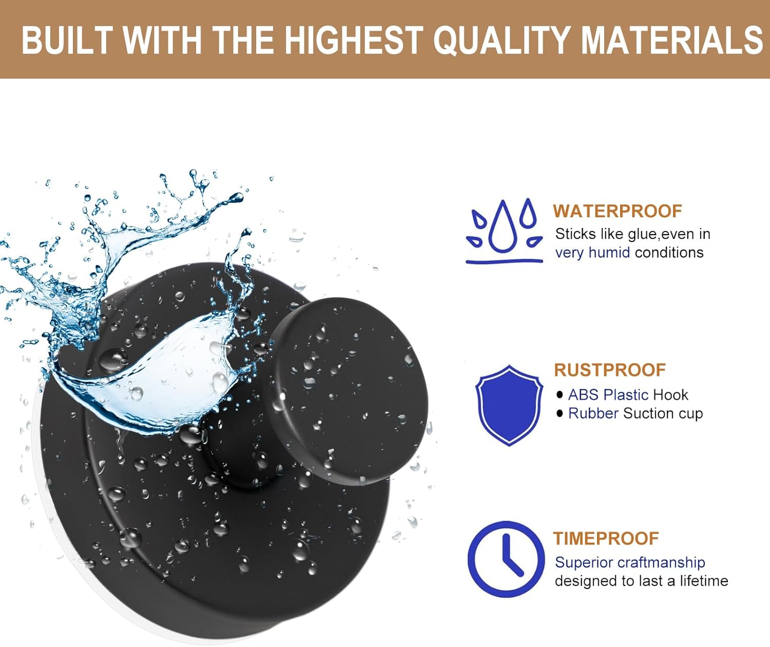 - SUITABLE FOR MORE SURFACES - The suction cup not only works on Glass, Mirrors, Glossy , Acrylic shower bathtub, Smooth stainless steel, Quartz, etc smooth surfaces, and aslo Wood, Plastic, Laminate, ect other porous surfaces. --- For installation on porous surfaces, first install the included 3M adhesive discs, then the suction over it. --- Do not install the suction or 3M adhesive discs over painted walls and wallpaper.