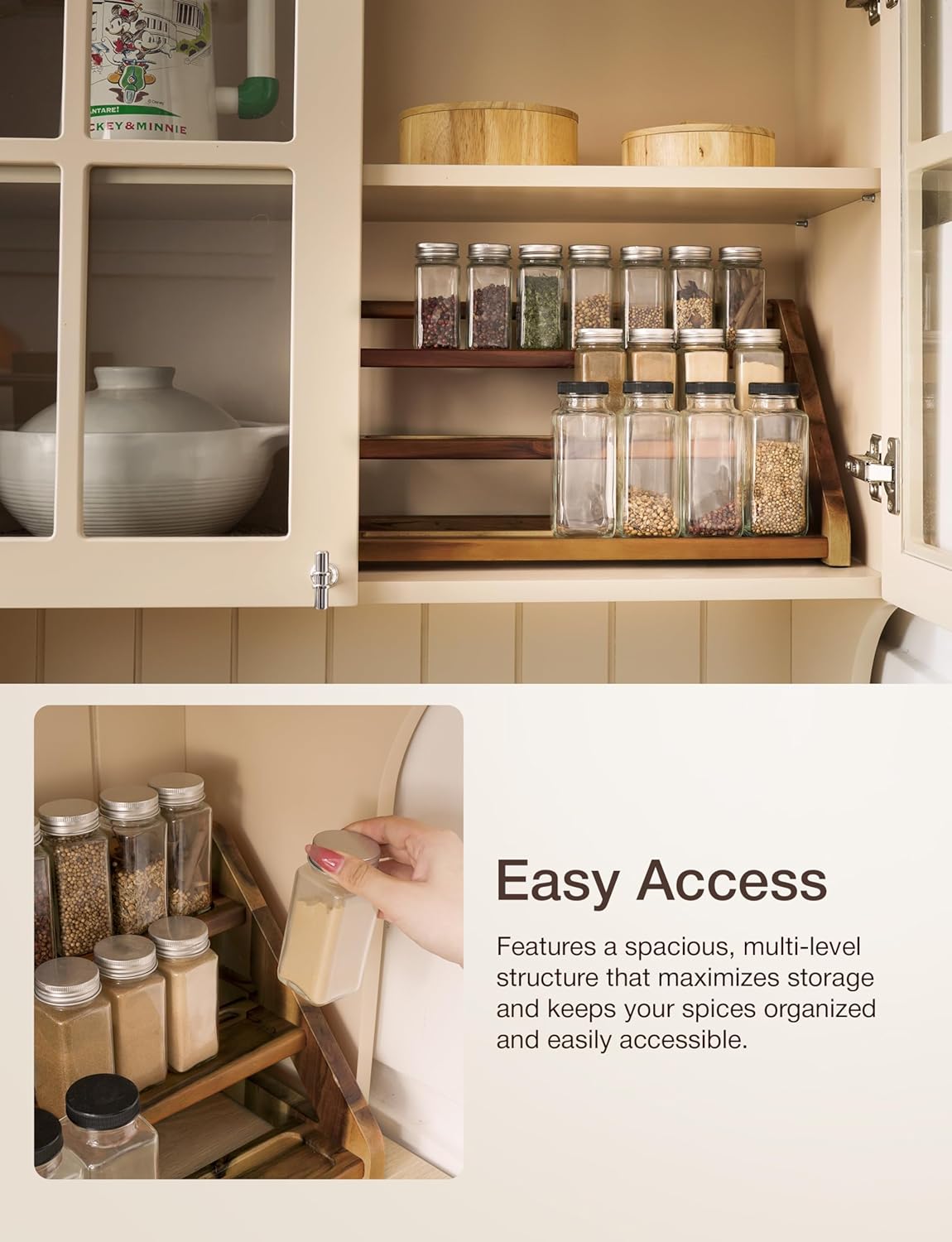 - Premium Acacia Wood Construction: Crafted from durable acacia wood with a rich walnut finish, this wood spice rack combines timeless elegance and strength, perfect for spice organization for cabinet or countertop. Elevate your kitchen with a warm, natural touch.