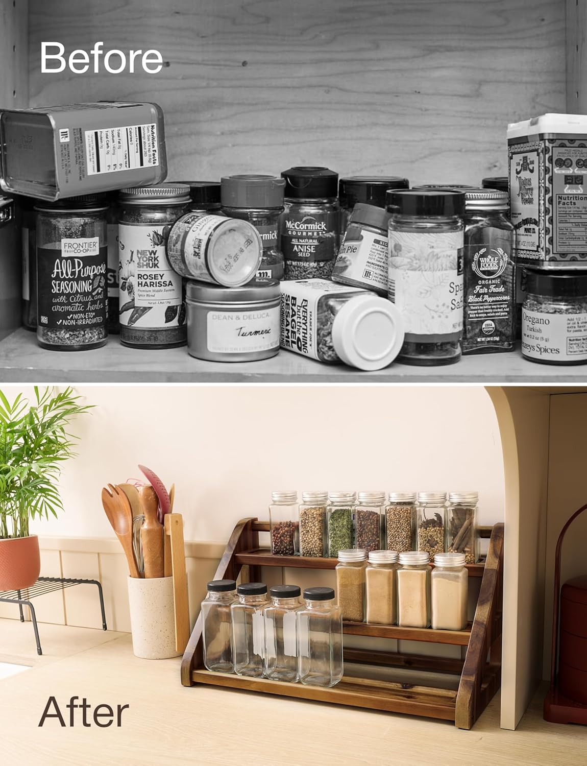 - Elegant and Easy to Assemble: Featuring a beautiful wooden tray design with smooth finishes, this spice shelf adds charm to any kitchen while offering effortless assembly with included clear instructions, so your spice racks are ready to use in minutes