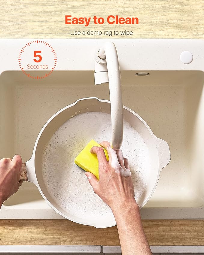 - Premium Material: Made with a Maifan stone non-stick coating, this cookware set ensures easy food release and effortless cleaning. The interior withstands temperatures up to 380°C, making it reliable for daily use. The cookware does not include lead, cadmium, and PFOA. Cook with less oil for a healthier meal experience
