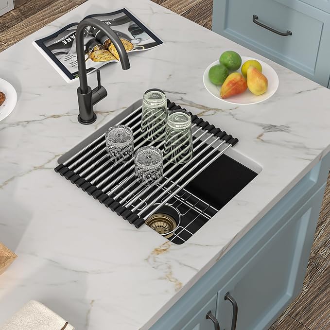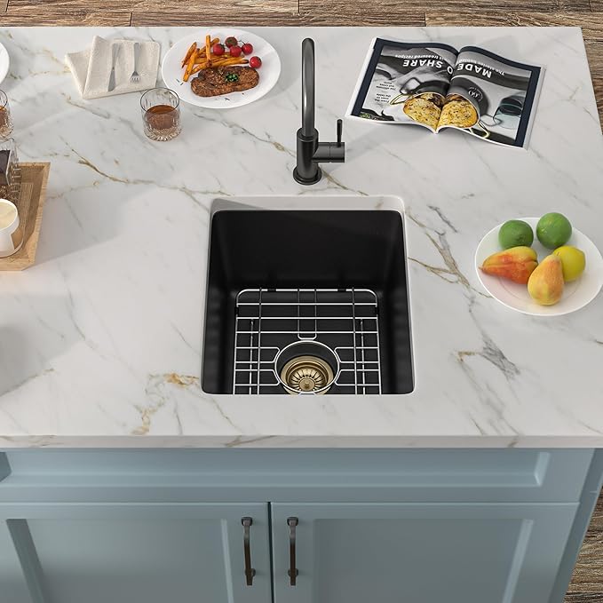 - Package/Fulorni Service ––Complete package includes a 15 inch single bowl granite composite undermount bar sink, roll up drying rack, a bottom rinse grid, a gold drain assembly with cover, etc.|If any concerns and questions about the black bar sink, pls get in touch with us, Fulorni service team is always ready to help you.