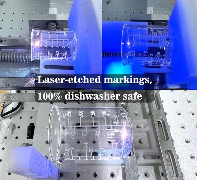 - 【Etched Graduations】: The measuring cup features etched graduations in five units (Cup, ml, OZ,Teaspoons, Tablespoons). This ensures you can measure all types of liquids and follow any recipe with ease. Laser etching scale,It is 100% dishwasher safe, allowing you to trust it for hassle-free cleaning